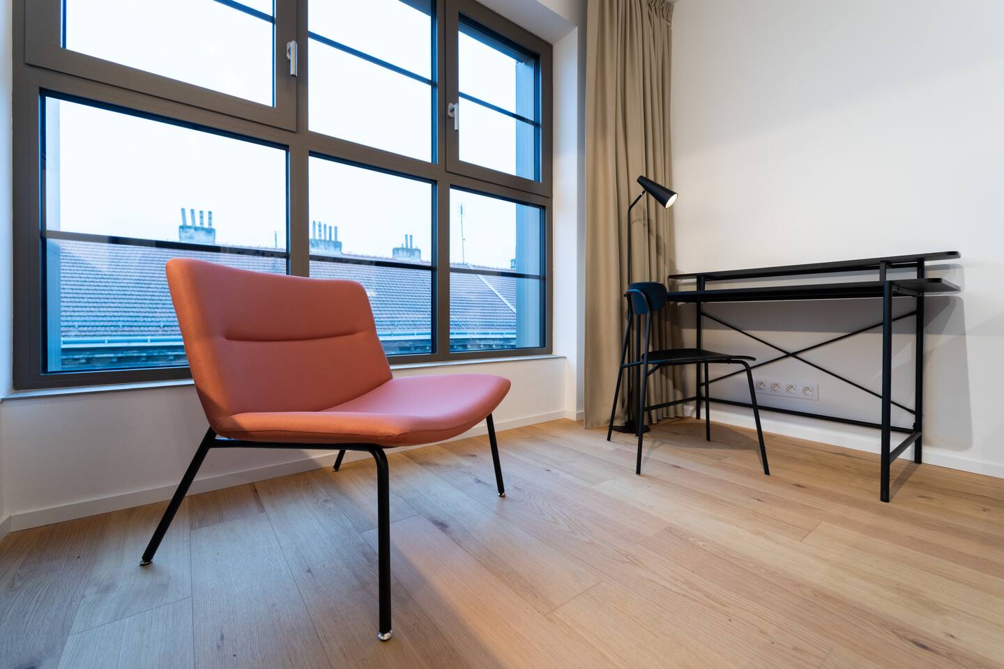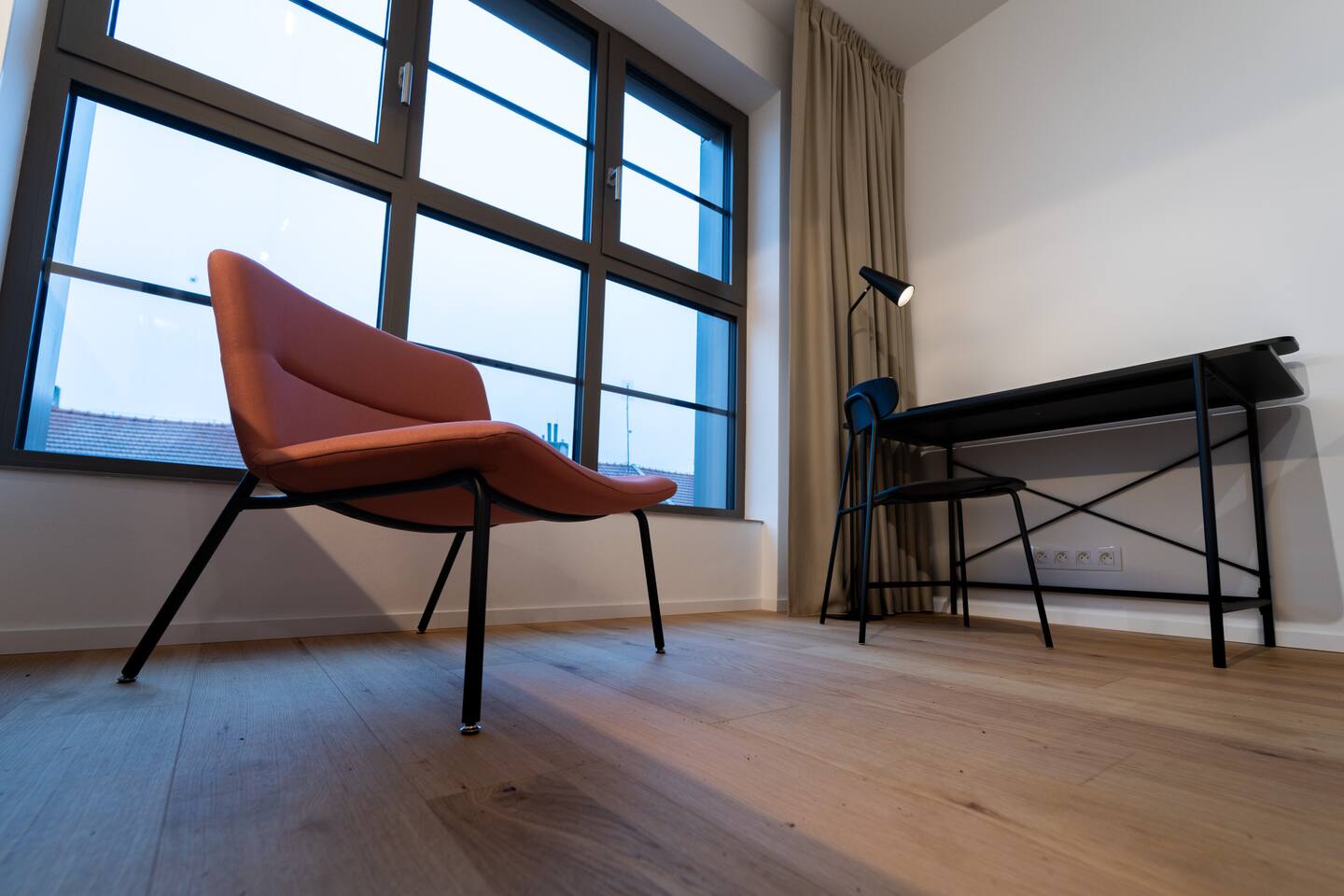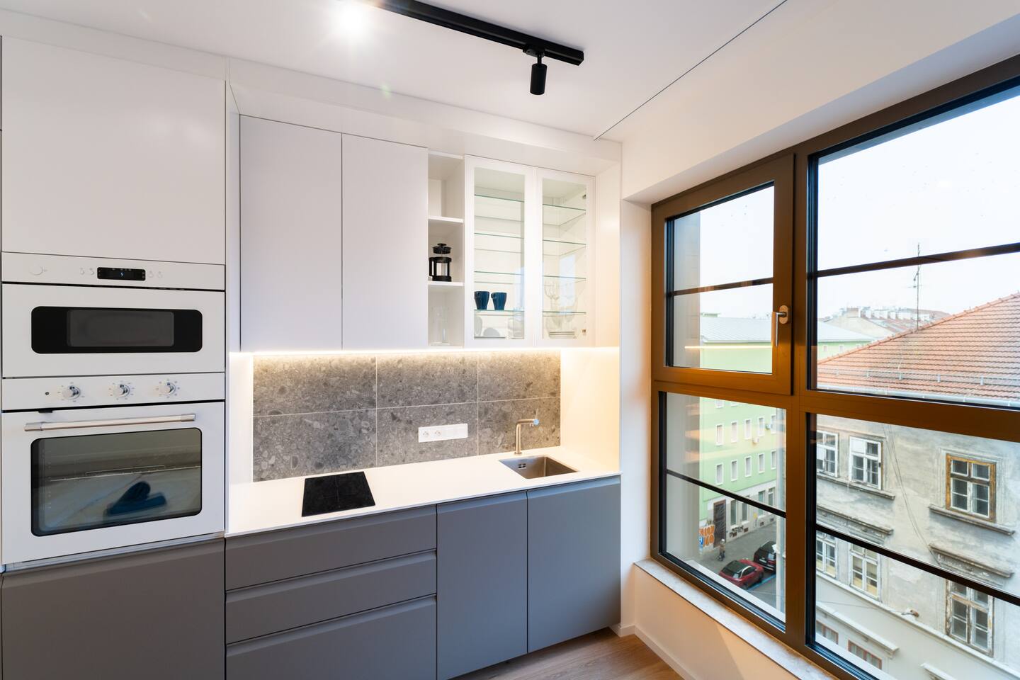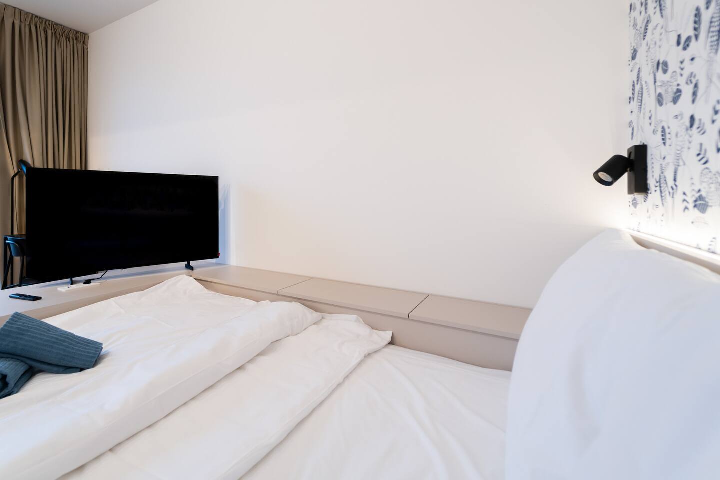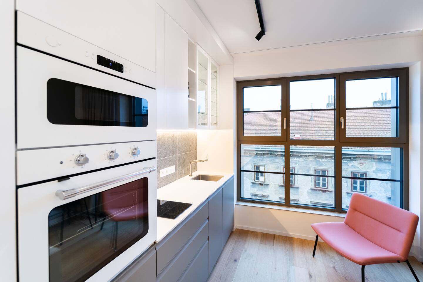 Indigo Boutique Studio is a stylish studio for two, designed in calm, deeper tones that create a serene atmosphere. A full-wall window provides natural light while maintaining a cosy, intimate feel. The residence offers a 24/7 reception as well as an on-site bakery and café with excellent breakfast options. Guests can enjoy free fitness access in the building and on-site bakery & café services. TV, Wi-Fi, private bathroom and shower included. No pets, smoking or parties.